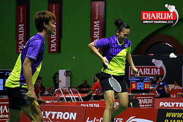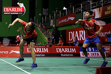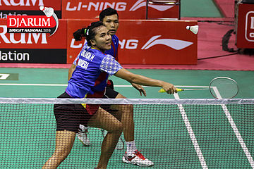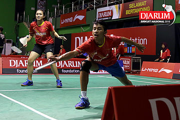 Danang Dwi/Sri Wulan Sari (Jaya Raya) Mengembalikan Shuttlecock.