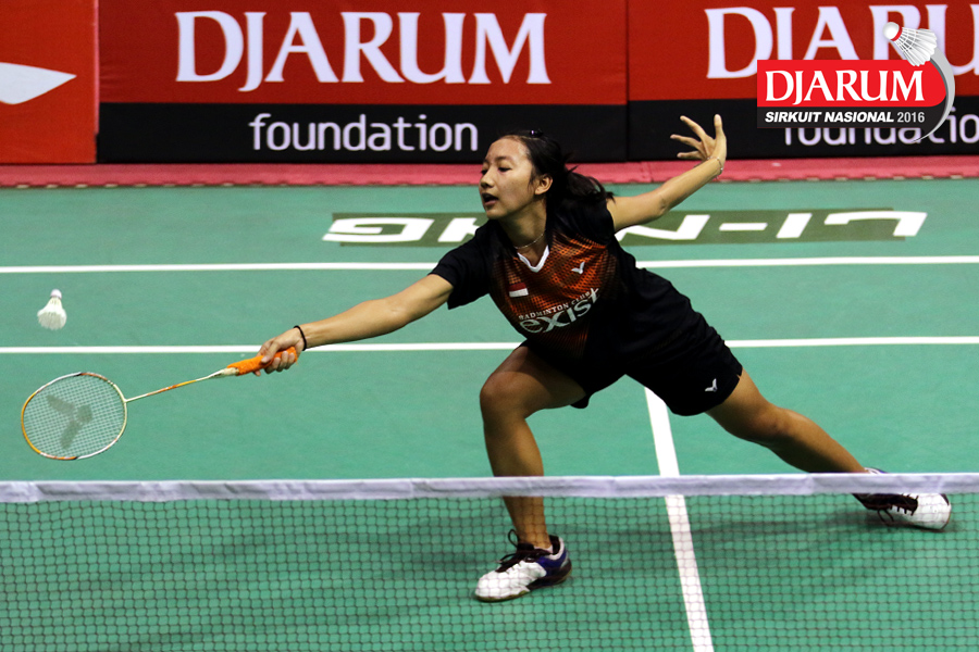 Bening Sri Rahayu (Exist) Mengembalikan Shuttlecock.