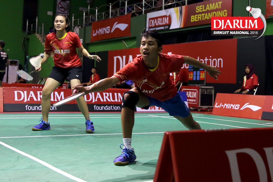 Alvindo Saputra/Vehrenica Debora (Tangkas) Mengembalikan Shuttlecock.