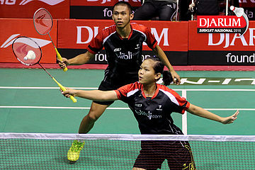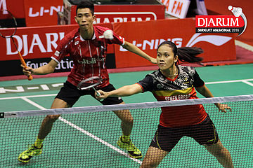 Rizal M. Sofyan/Siti Fadia (Djarum Kudus) Mengembalikan Shuttlecock.