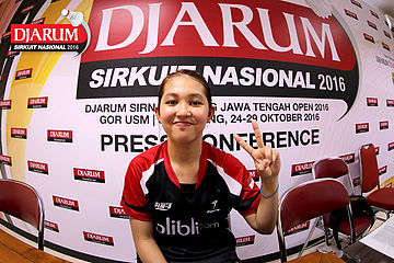 Ribka Sugiarto (Djarum Kudus) Berpose Di Media Center.