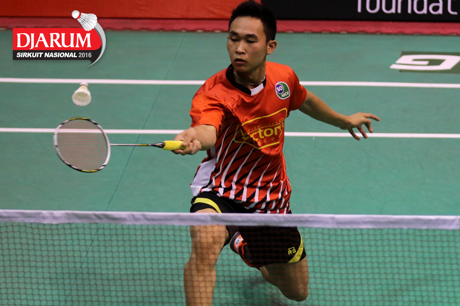 Yosua (Victory Bogor) Mengembalikan Shuttlecock.