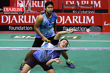 Dian Fitriani/Nadya Melati (Pertamina Fastron) Mengembalikan Shuttlecock.