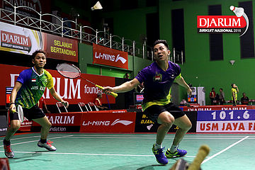 Clinton Hendrik/Rizko Asuro (Jaya Raya/Guna Dharma) Melepaskan Serangan.