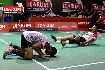 Selebrasi Kemenangan Haffiz Nur Adila/Helmi Abbu (Djarum Kudus).
