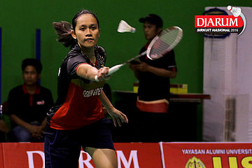 Aprilia Yusandari (Semen Gresik) Mengembalikan Shuttlecock.
