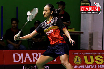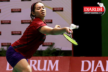 Febby Angguni (Pertamina Fastron) Mengembalikan Shuttlecock.