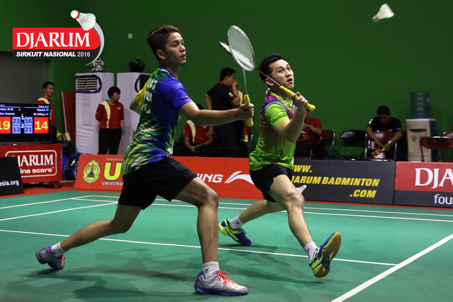 Selebrasi Clinton Hendrik/Rizko Asuro (Jaya Raya/Guna Dharma).