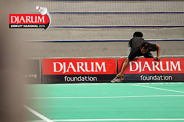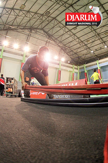 Suasana persiapan Djarum Sirkuit Nasional Li-Ning 2016 Kalimantan Selatan Open di GOR H.M Hasanudin, Banjarmasin.