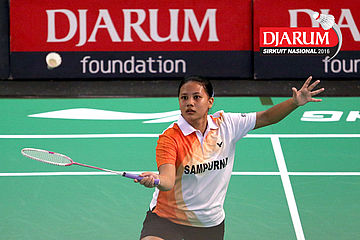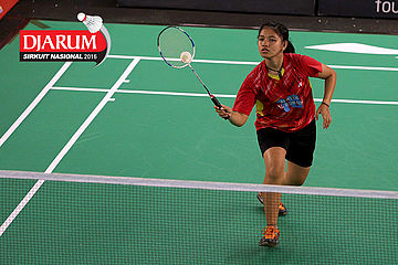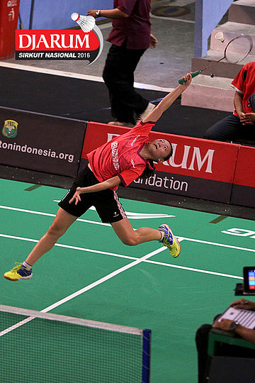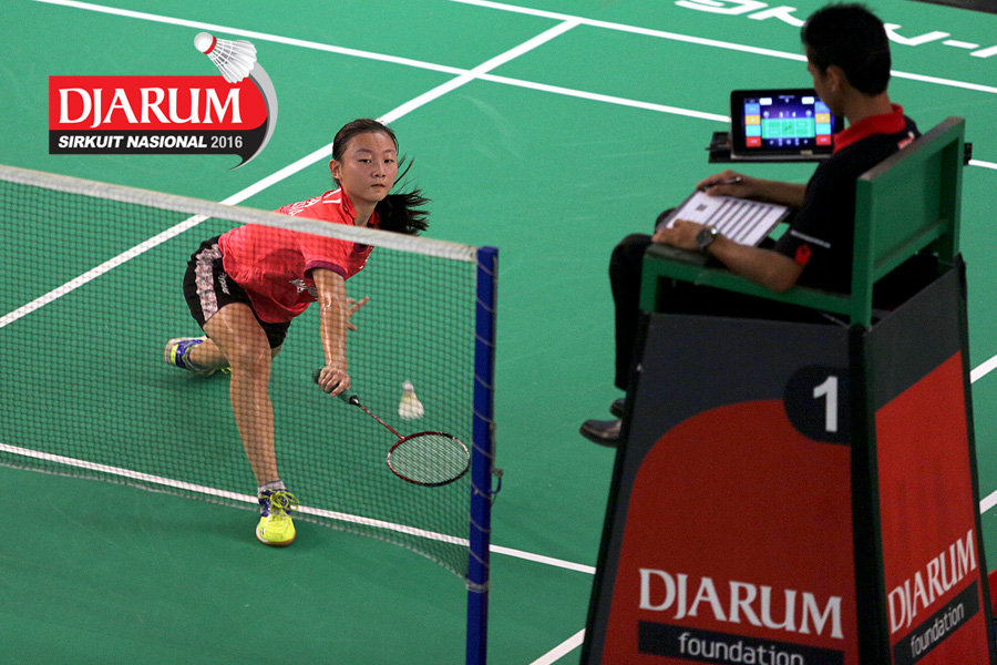 Vania Indriani (Eng Hia Badminton Academy) melepaskan serangan