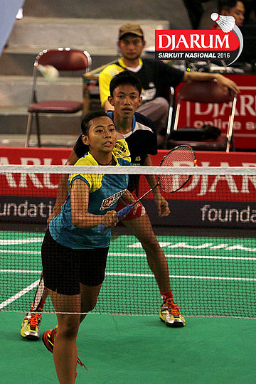 M. Rizaquloh/Rosalia Rojalin (SGS PLN) mengembalikan shuttlecock