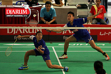 Zachary Sia/Anna Cheong (AJBC) bersiap menyambar pengembalian tanggung
