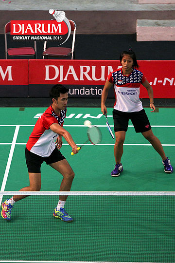 Yohanes Rendy/Dian Fitriani (Pertamina Fastron) menyambut serve