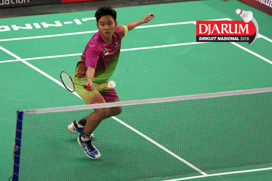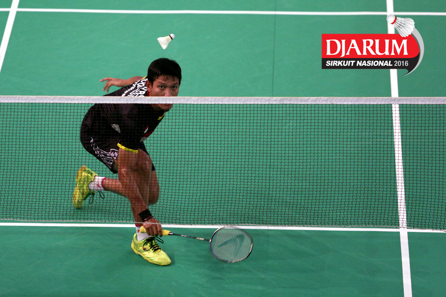 Panji Akbar (ISTC Sukabumi) mengembalikan shuttlecock