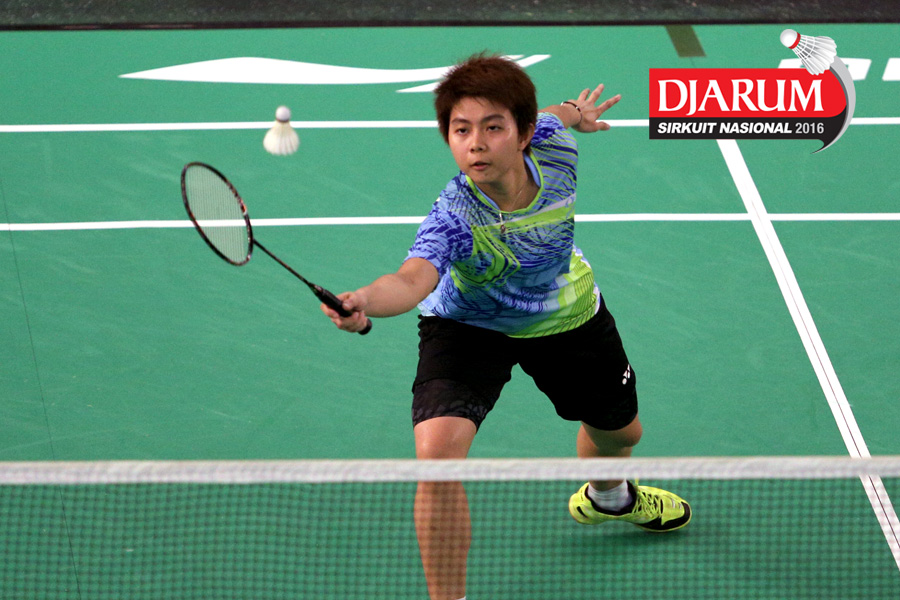 Febby Angguni (Tjakrindo Masters) mengembalikan shuttlecock