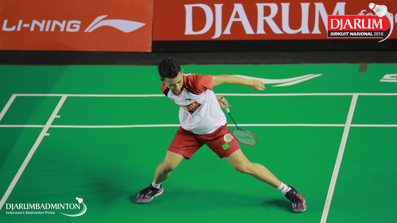 Mochamad Fajar Ardi Pradana (PB Djarum, Kudus) berusaha melakukan pertahanan