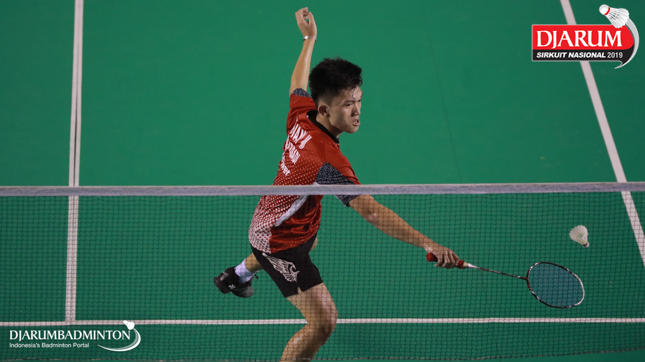 Dwiki Arsyi Syahnanda (Sentra, Banjarmasin) mengembalikan shuttlecock