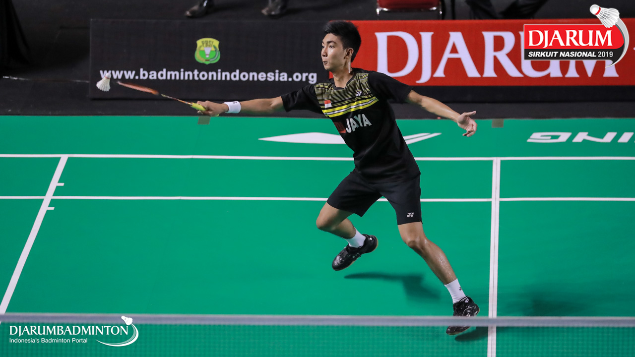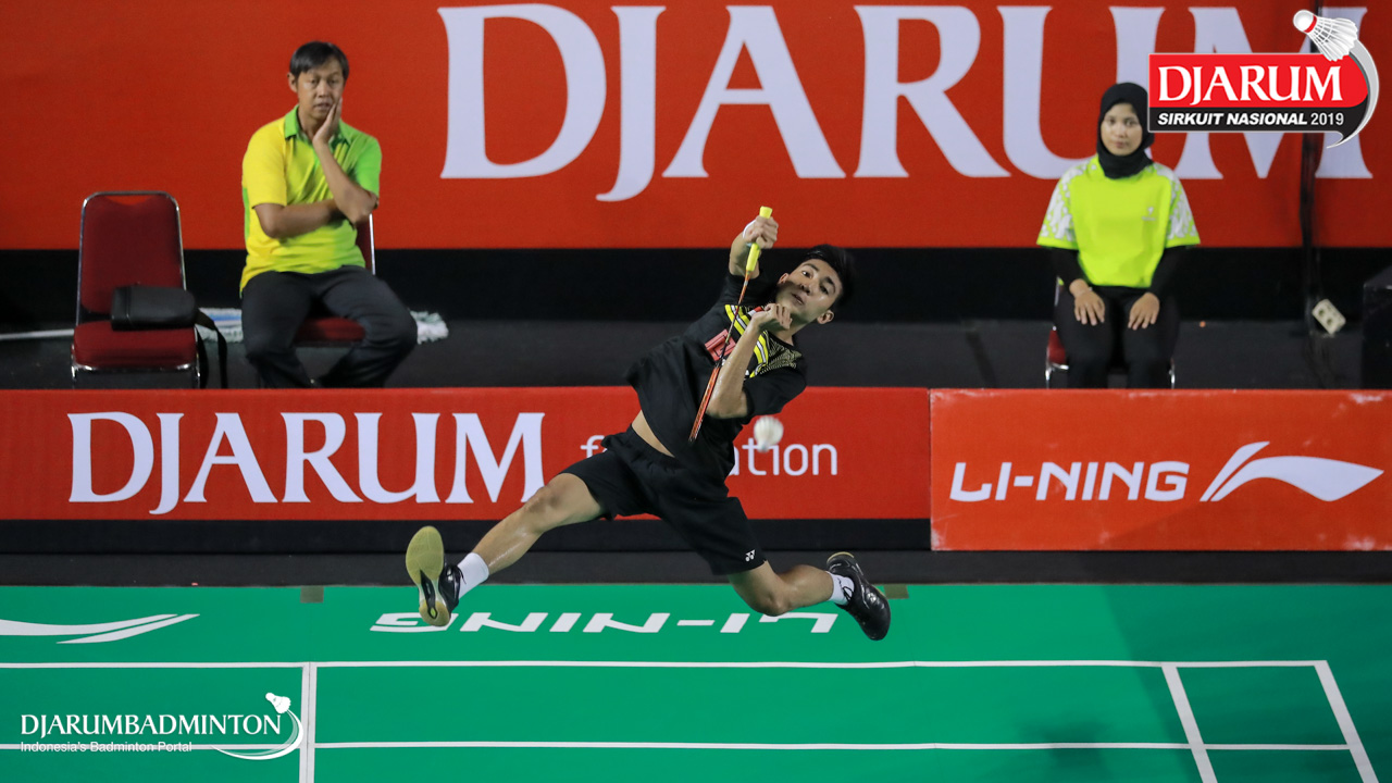 Muhammad Febriansyah (Jaya Raya Jakarta) mengembalikan shuttlecock