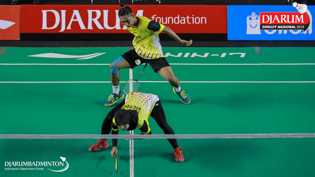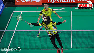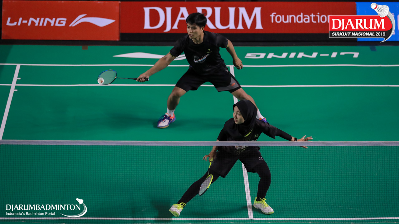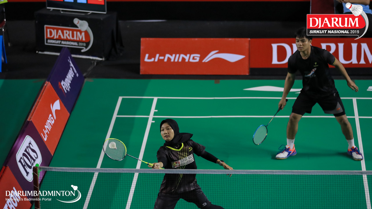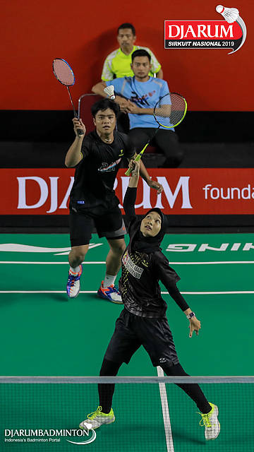 Muhammad Andhika+Novara Mega Vriana (Berkat Abadi, Banjar) menyambut shuttlecock