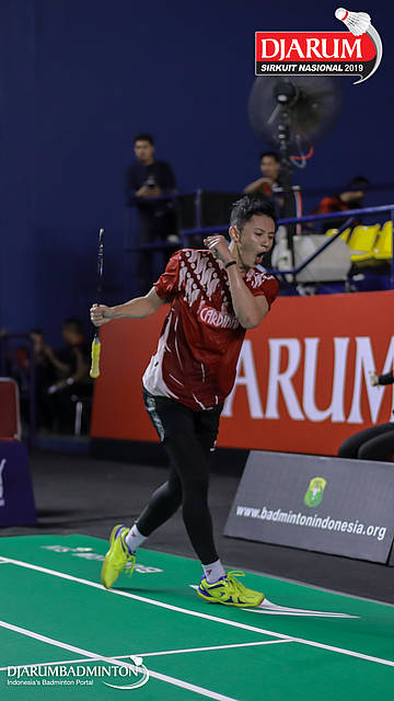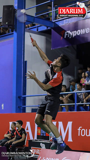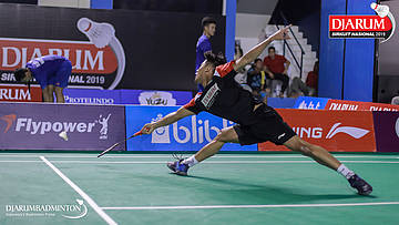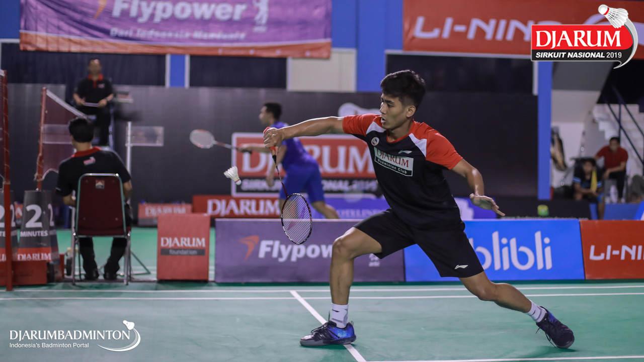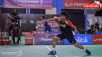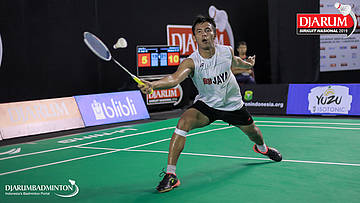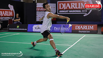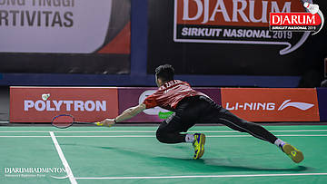 Handoko Yusuf Wijayanto (PB Djarum, Kudus) berusaha menggapai shuttlecock