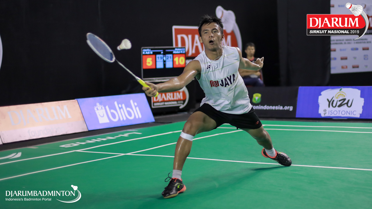 Krishna Adi Nugraha (Jaya Raya Jakarta) menyambut shuttlecock