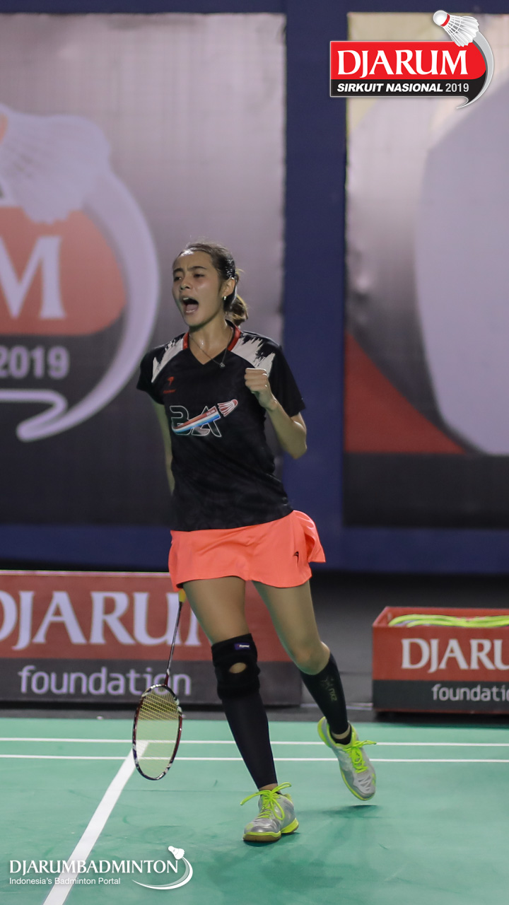 Amira Fitria Liza+Finna Juniar Nada Pramesti (Pusat Pelatihan Olahraga Pelajar) melepaskan serangan