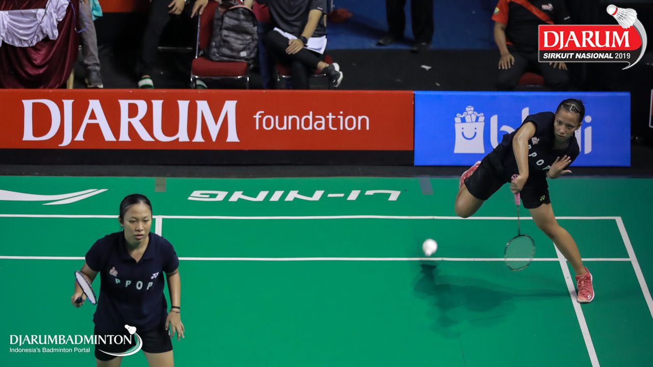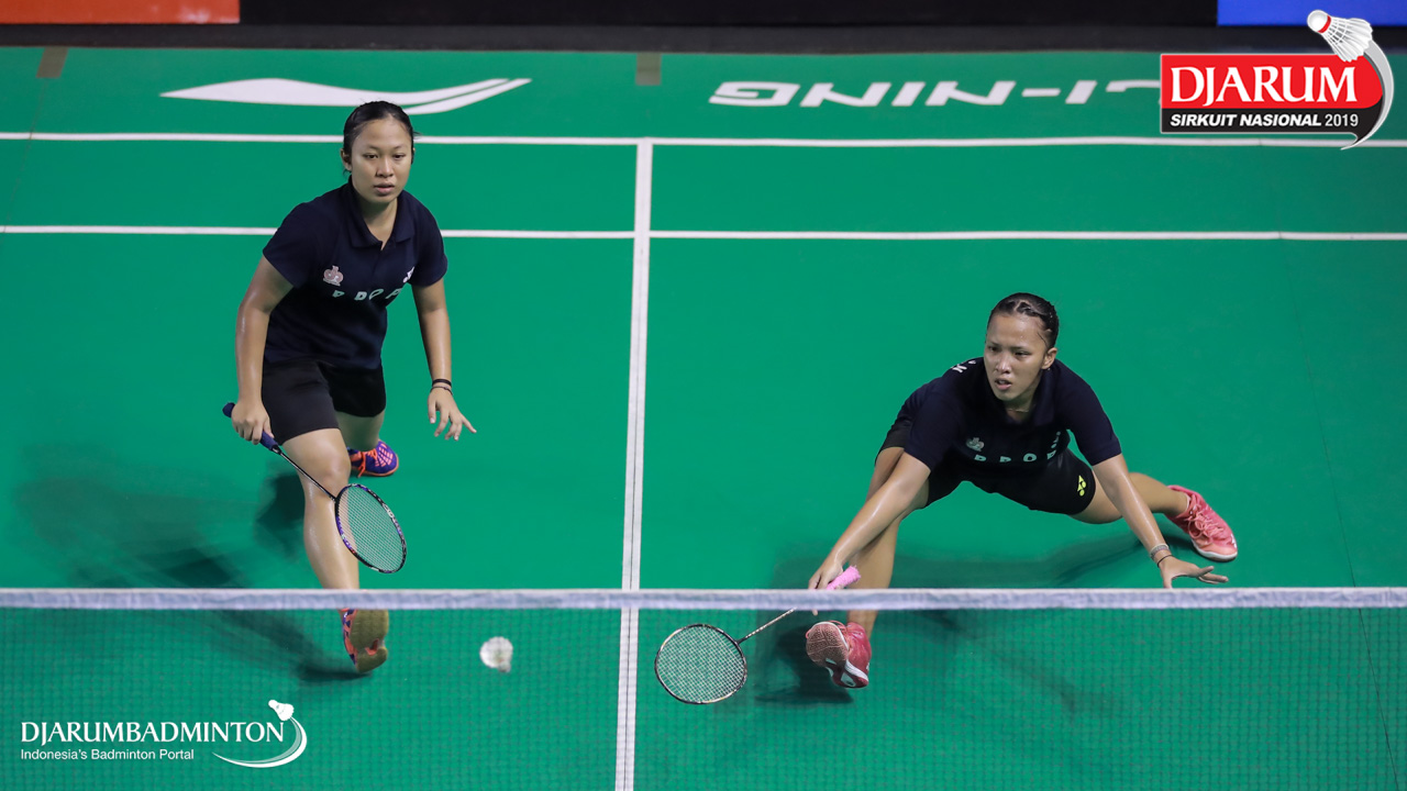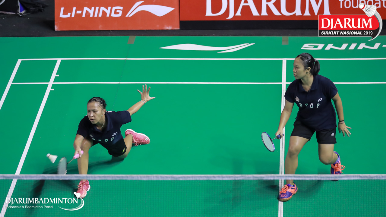 Mutiara Lailatul Nur+Stefanny Purnama Wijaya (Exist Badminton Club) menyambut serangan