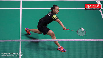 Ni Made Pranita Sulistya Devi (Exist Badminton Club) menggapai shuttlecock