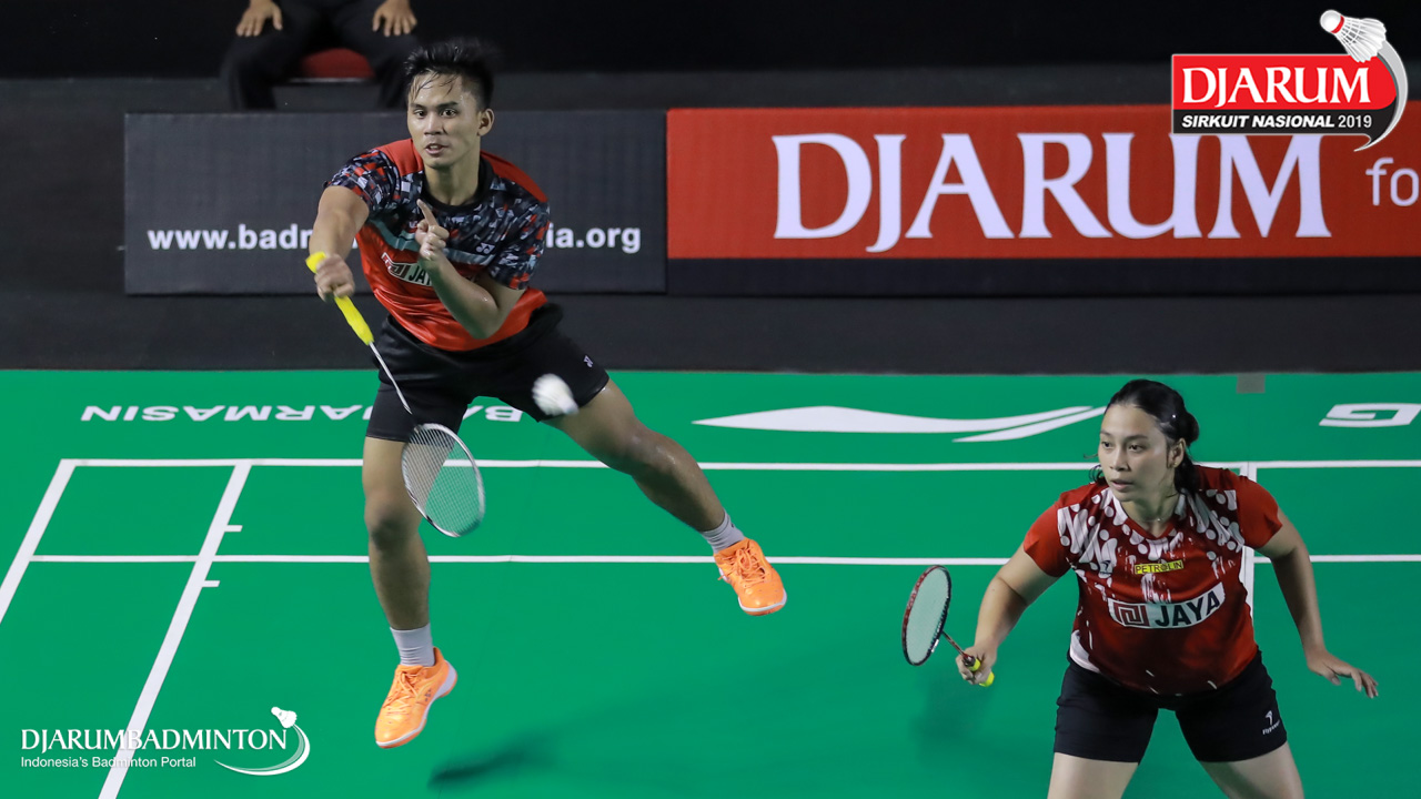 Amri Syahnawi+Pia Zebadiah Bernadet (Jaya Raya Jakarta) berusaha mengembalikan serangan