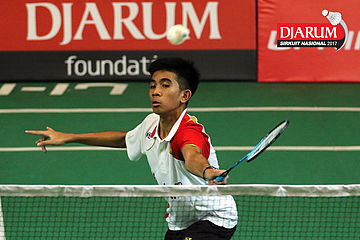 M. Azahbru (Djarum Kudus) Mengembalikan Shuttlecock