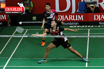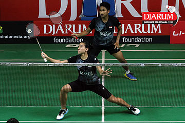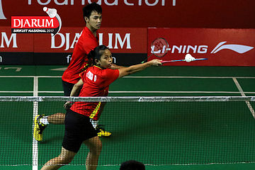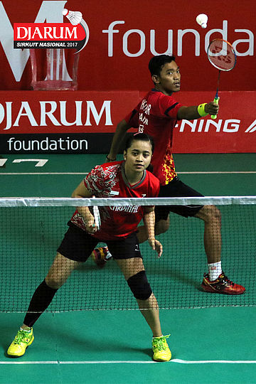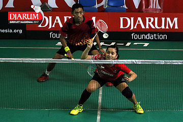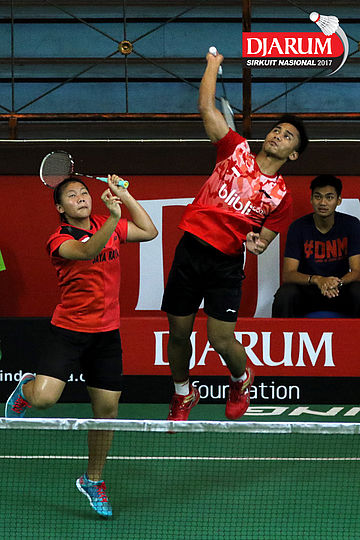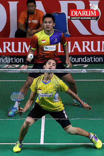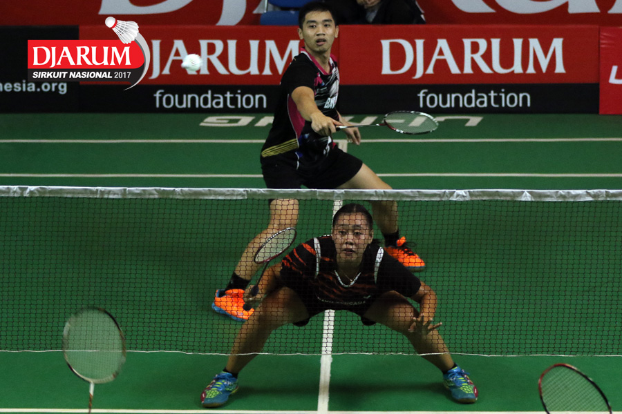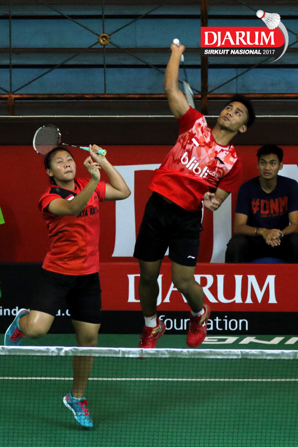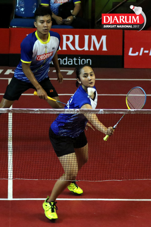 Fernando Kurniawan/Dian Fitriani (Djarum Kudus/Pertamina Fastron) Mengembalikan Shuttlecock