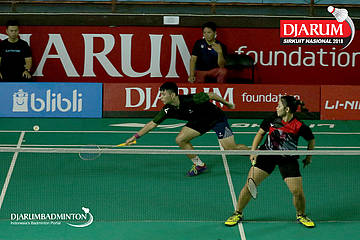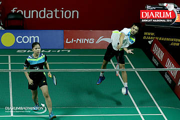I Putu Pande Sheva Brahmantya Putra/Aldira Rizki Putri (PB Djarum, Kudus) bersiap menghadang serangan