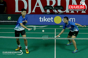 Ilyas Rachman Ryandhani/Dhea Ananda Fauji (Pendowo, Malang) menyambut serangan