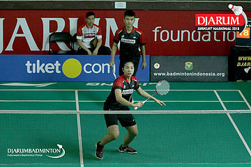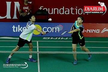 Yoggi Pamungkas/Fauzia Kartikasari (PB Djarum, Kudus) menghadang serangan