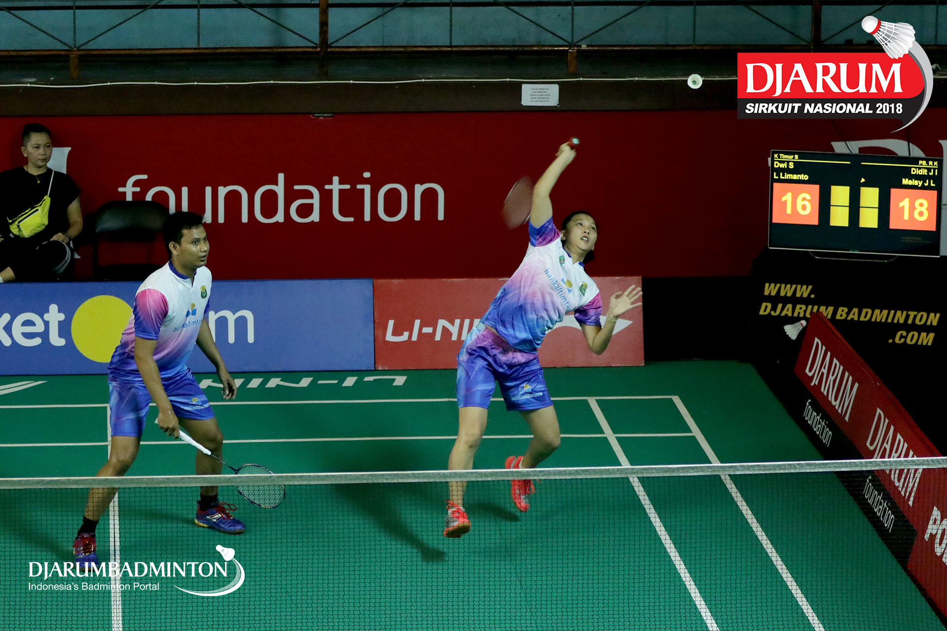 Didit Juang Indrianto/Meisy Jolly Lee (PB. RAJAWALI KUBAR) berusaha mengembalikan shuttlecock