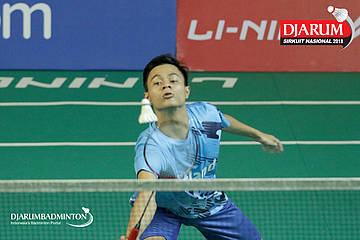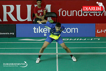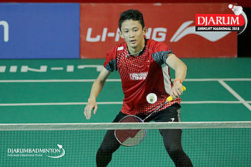 Riyanto Subagja (PB Djarum, Kudus) megembalikan serangan