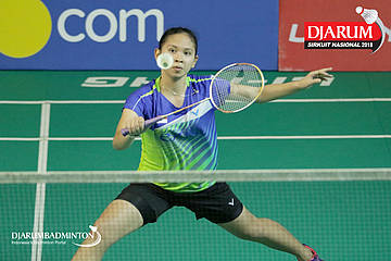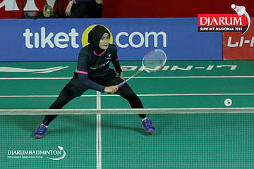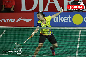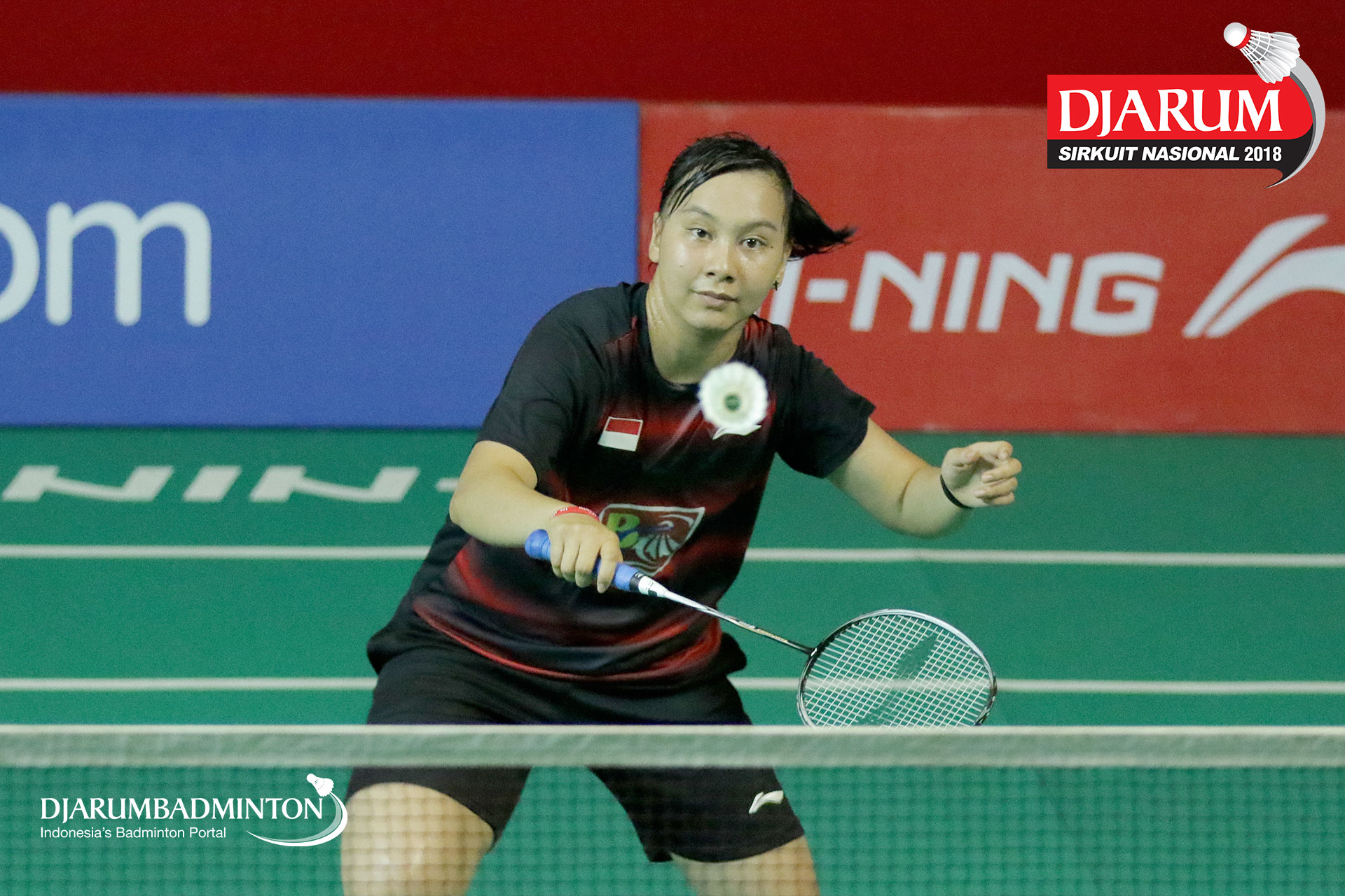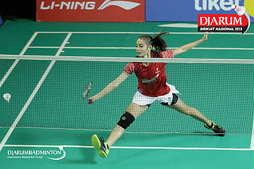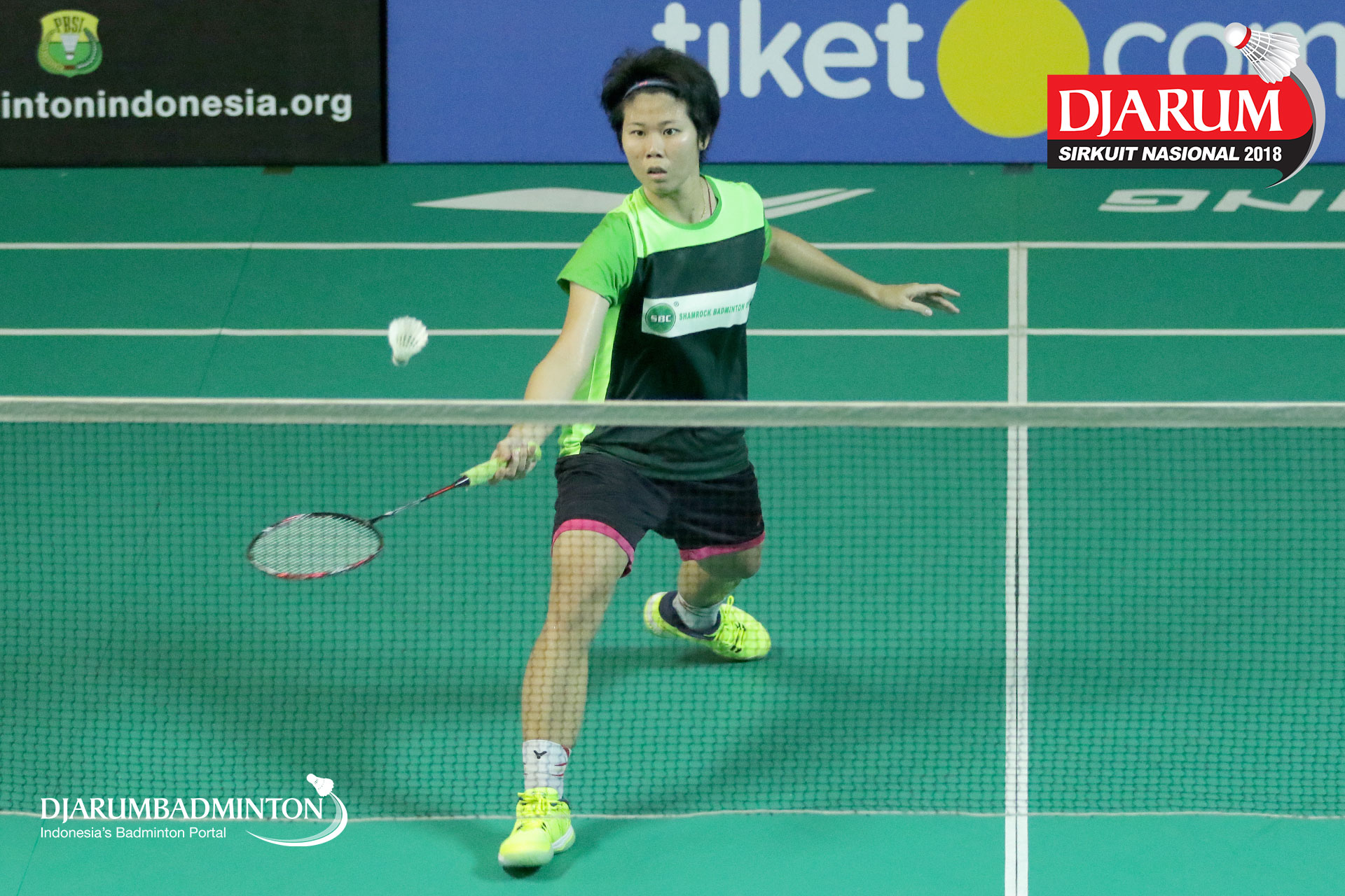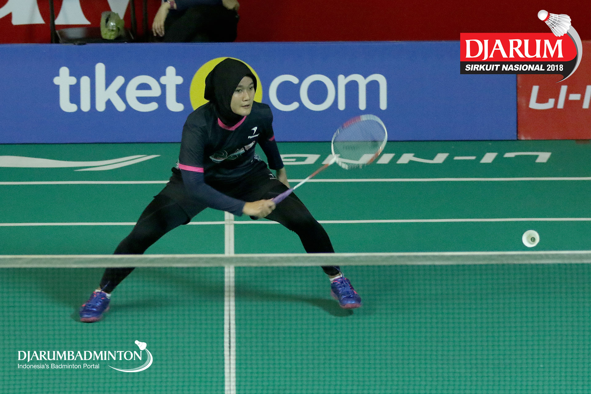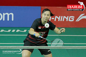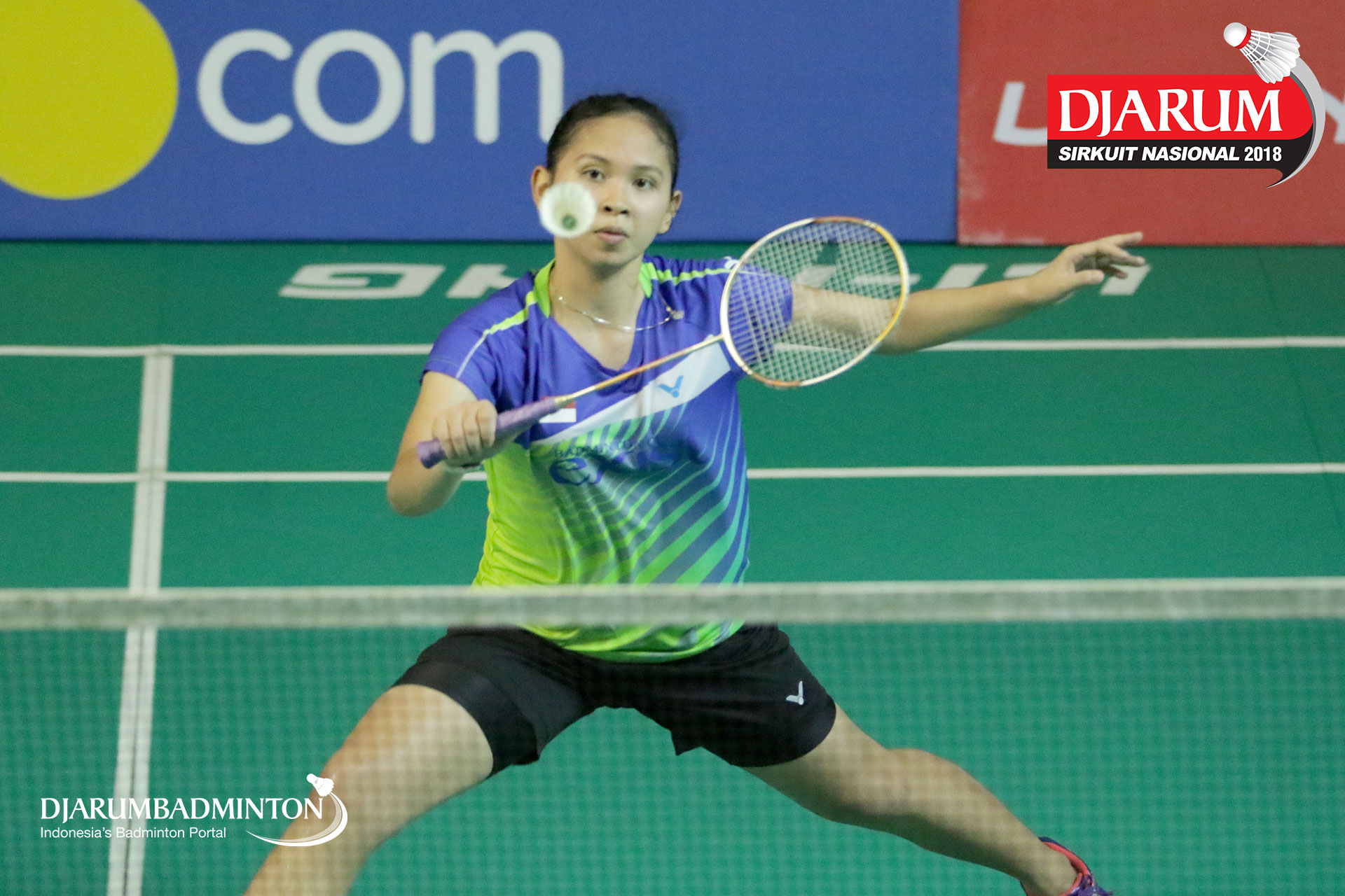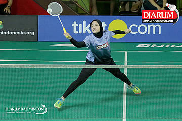 Hanna Ramadini (Mutiara Cardinal, Bandung) menyambut shuttlecock