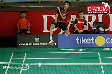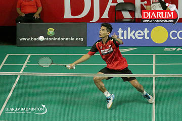 Handoko Yusuf Wijayanto (PB Djarum, Kudus) mengembalikan serangan