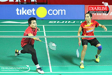 Nugroho Andi Saputro/Tiara Rosalia Nuraidah (Halim, Jakut/Mutiara Cardinal, Bandung) mengembalikan serangan
