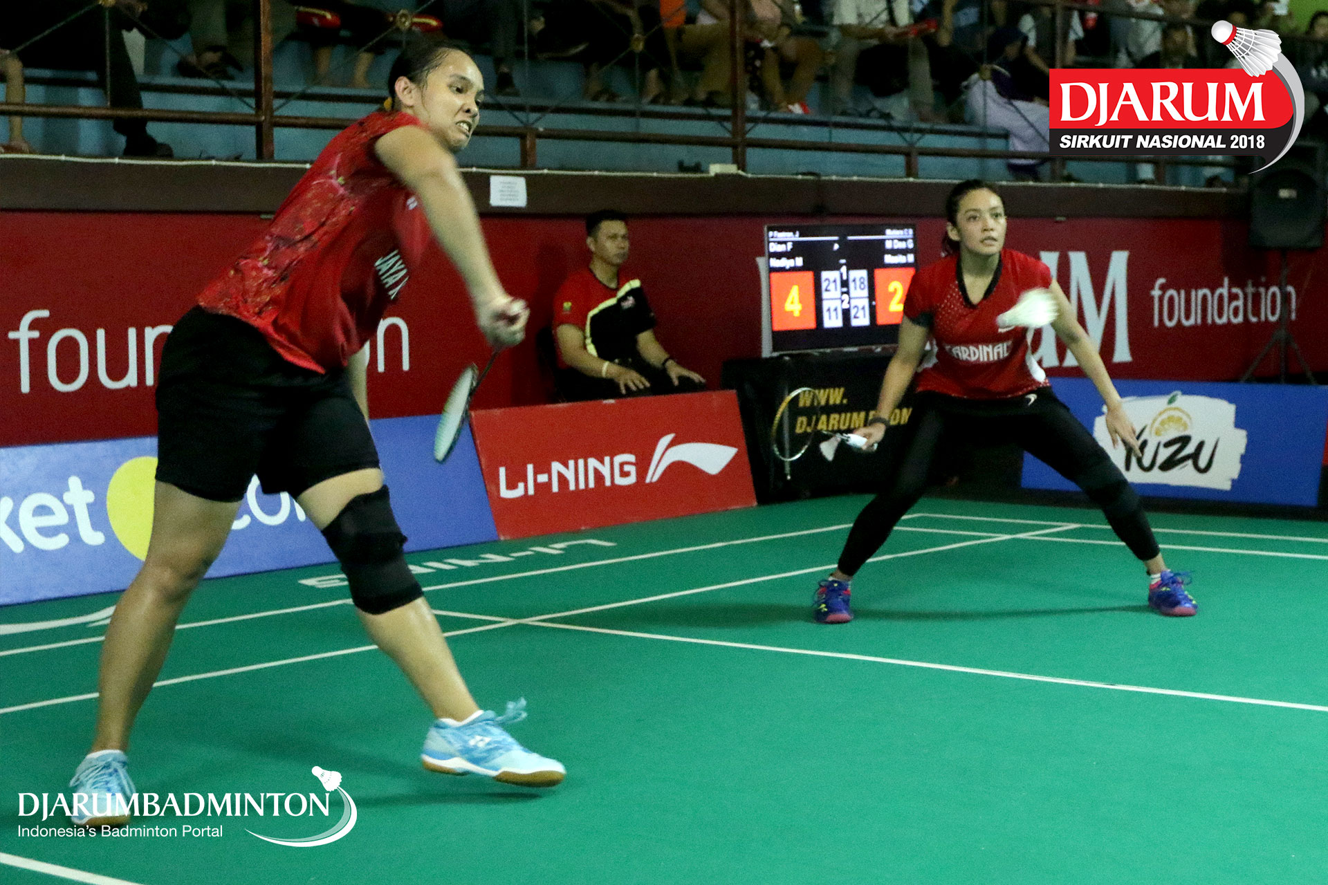 Maretha Dea Giovani/Masita Mahmudin (Mutiara Cardinal, Bandung/Jaya Raya Jakarta, Jakpus) bersiap menghadang serangan