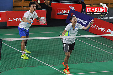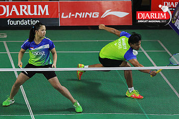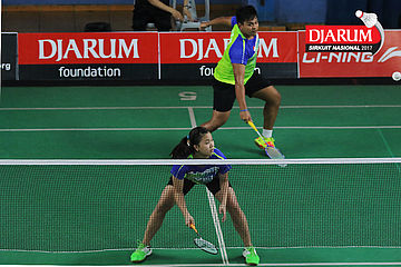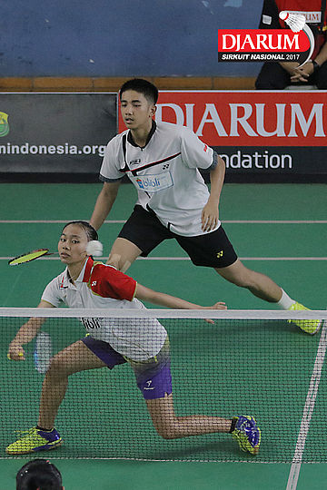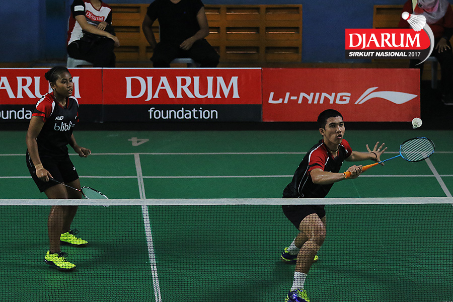 Muhammad Nur Hafizi/Mia Dian Nurlia (Djarum Kudus) Mengembalikan Shuttlecock