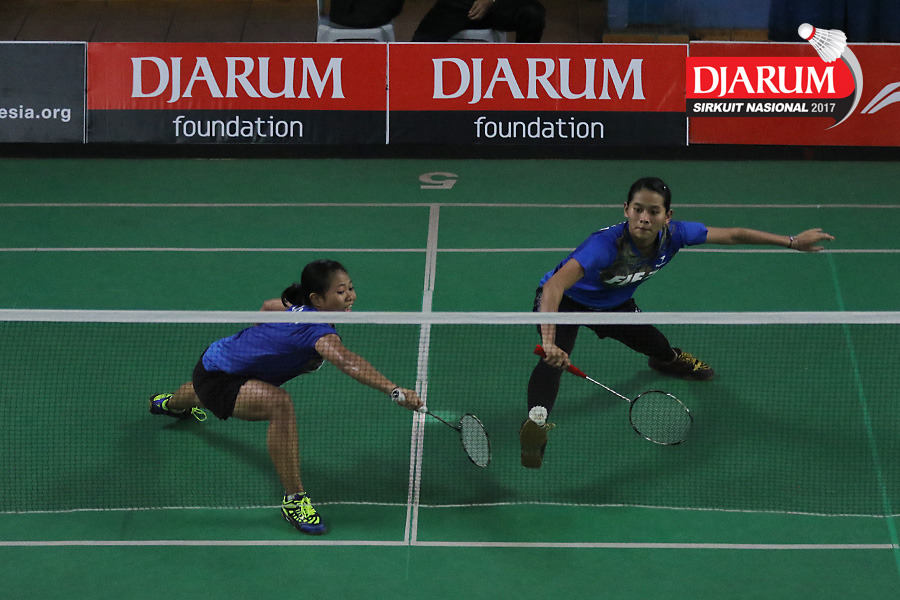 Aisyah Nuraini/Annisa Mubarokah (FIFA Badminton Club Sidoarjo) Bersiap Menyambar Pengembalian