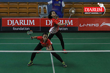 Syarifah Nurmariam/Windi Siti Mulyani (Victory Bogor) Mengembalikan Shuttlecock