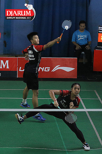 Rizky Ade Putra/Stella Monica Liman (Eng Hian Badminton Academy/Victory Bogor) Melakukan Jump Smash