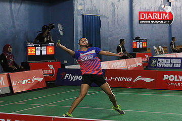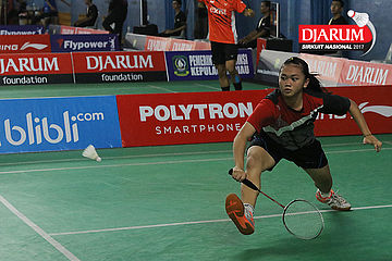 Tedi Supriadi/Devi Tika Permatasari (Djarum Kudus/Berkat Abadi Banjarmasin) Melepaskan Serangan