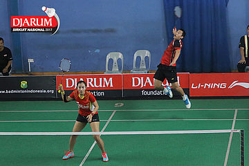 Tedi Supriadi/Devi Tika Permatasari (Djarum Kudus/Berkat Abadi Banjarmasin) Bersiap Melakukan Smash