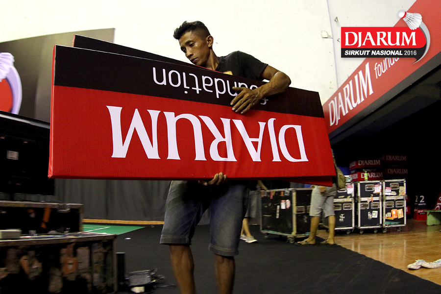 Persiapan lapangan Djarum Sirkuit Nasional Li-ning Lampung Open 2016 di GOR Saburai