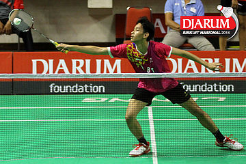 Amal Ori Wibowo (SARWENDAH BADMINTON) menerima serve Gary Lam (HIQUA PRIMA BANDUNG)