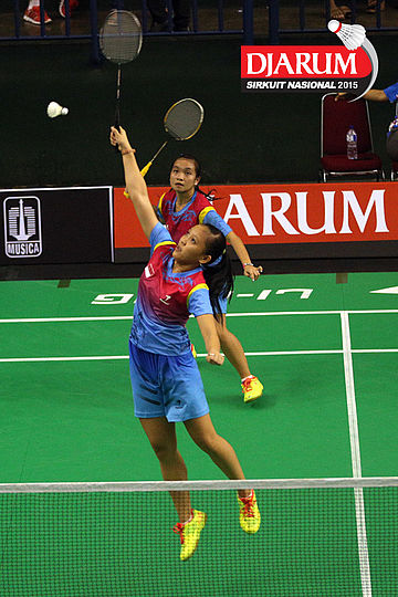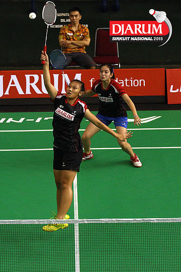 Komala Dewi/Vita Marissa (Djarum Kudus) bersiap menyambut pengembalian dari Maria Natalia/Monica Sandia (Focus).