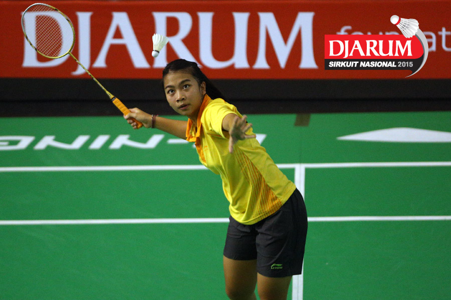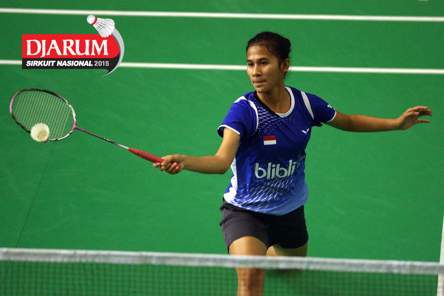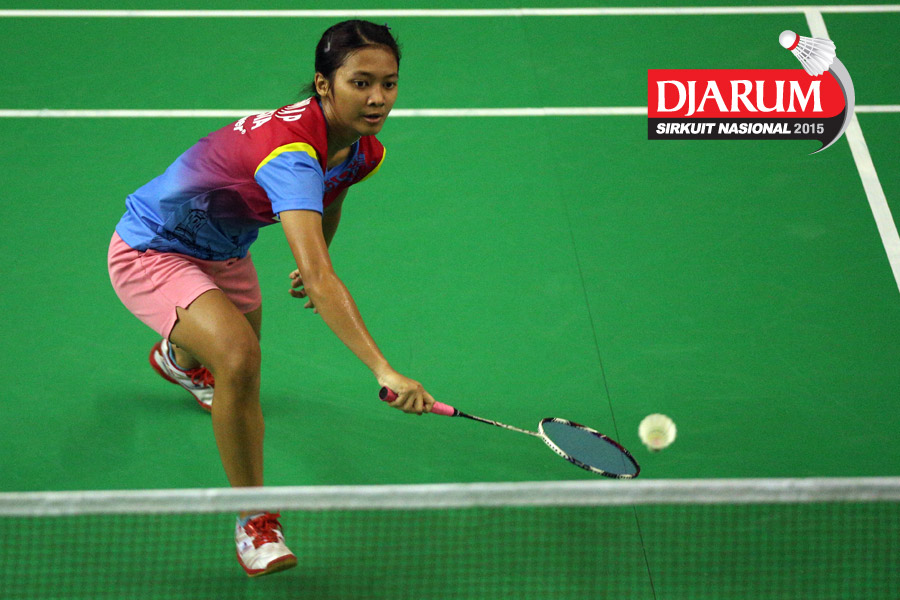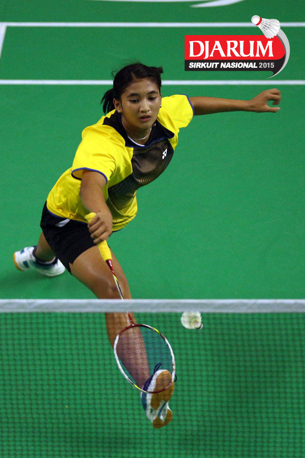Priskila Siahaya (Pelatnas) menyambut pengembalian dari Jessica Muljati (Shamrock Medan).